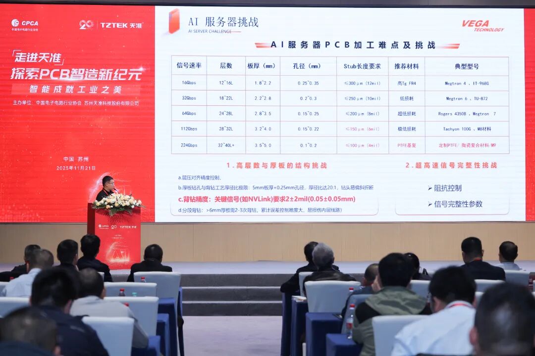 CPCA副秘书长冼彤在开幕致辞中指出,PCB作为电子信息产业的基石,其智能化升级与产业链的整体效能提升紧密相关;而人工智能正是驱动这场产业升级的战略引擎。他呼吁业界积极探索并搭建常态化的高水平技术交流平台,凝聚产业力量,共筑繁荣、创新的PCB行业新生态。